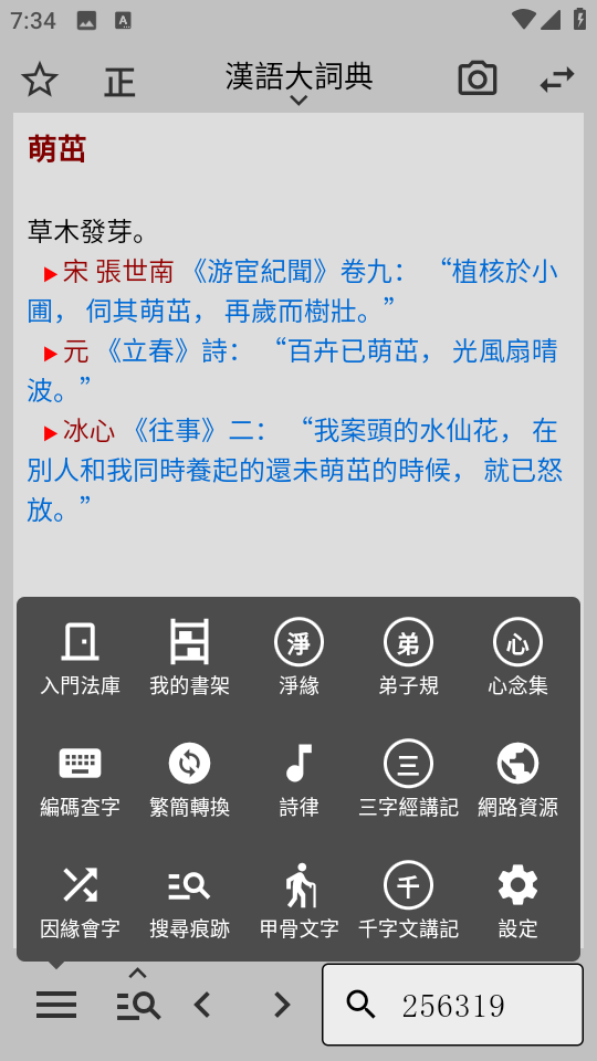 在手机上便利地学习古文,查询辞典、学习繁体字、近体诗诗律、三字经、千字文、弟子规、甲骨文等等。